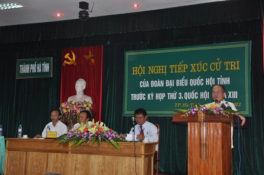 Để chuẩn bị cho kỳ họp thứ 3, Quốc hội khóa XIII, từ ngày 2 - 3/ 5/2012, đồng chí Nguyễn Sinh Hùng - Uỷ viên Bộ Chính trị, Chủ tịch Quốc hội và Đoàn ĐBQH Hà Tĩnh đã có các buổi tiếp xúc chuyên đề với cử tri là cán bộ quản lý các trường từ mầm non, đến THPT ở huyện Đức Thọ và cán bộ giáo viên ở các trường đào tạo nghề trên địa bàn thành phố Hà Tĩnh. Cùng dự các cuộc tiếp xúc có các đồng chí Nguyễn Thanh Bình - Uỷ viên BCH Trung ương Đảng, Bí Thư Tỉnh uỷ, Chủ tịch HĐND tỉnh; Đinh Xuân Việt - Phó Bí thư Thường trực Tỉnh uỷ; Võ Kim Cự - Phó Bí thư Tỉnh uỷ, Chủ tịch UBND tỉnh, Trưởng Đoàn ĐBQH tỉnh, các đồng chí trong BTV Tỉnh uỷ, Thường trực HĐND, UBND, UBMTTQ tỉnh, lãnh đạo các ban, ngành cấp tỉnh và lãnh đạo thành phố Hà Tĩnh, huyện Đức Thọ