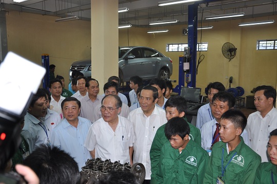 | Đồng chí Chủ Tịch Quốc hội, tham quan xưỡng thực hành tại Trường TC nghề Hà Tĩnh |