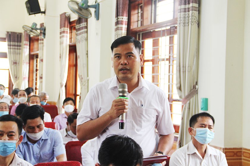 | Phó Trưởng đoàn chuyên trách Đoàn ĐBQH tỉnh Trần Đình Gia ghi nhận những ý kiến phát biểu tâm huyết, trách nhiệm của cử tri huyện Hương Sơn, đồng thời trao đổi, giải trình, làm rõ thêm một số nội dung liên quan |