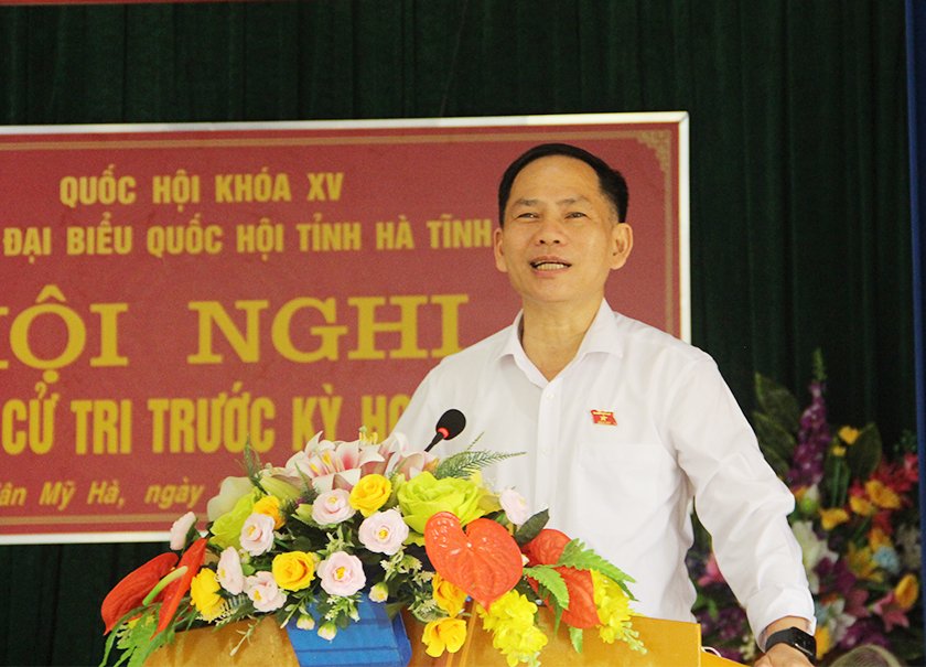 Phát biểu tại buổi tiếp xúc cử tri, Phó Trưởng đoàn chuyên trách Đoàn ĐBQH tỉnh Trần Đình Gia ghi nhận những ý kiến phát biểu tâm huyết, trách nhiệm của cử tri huyện Hương Sơn, đồng thời trao đổi, giải trình, làm rõ thêm một số nội dung liên quan. Đối với những ý kiến, kiến nghị của của cử tri thuộc thẩm quyền của Quốc hội, thư ký đoàn sẽ tổng hợp, phân loại để trình lên Quốc hội và các cơ quan chức năng xem xét, giải quyết.