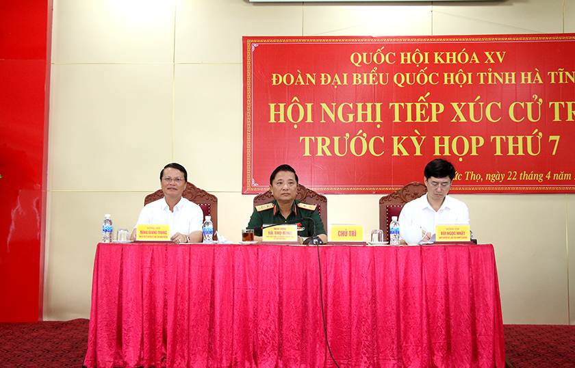 Thay mặt Đoàn ĐBQH tỉnh, Trung tướng Hà Thọ Bình, Tư lệnh Quân khu 4, đại biểu Quốc hội khóa XV, Ủy viên Ủy ban Quốc phòng và An ninh của Quốc hội ghi nhận, tiếp thu, giải trình và thông tin một số nội dung, vấn đề cử tri địa phương quan tâm. Đối với những ý kiến thuộc thẩm quyền giải quyết của Trung ương, Đoàn ĐBQH tỉnh sẽ tiếp thu, tổng hợp đầy đủ gửi đến Quốc hội và các cơ quan chức năng; những vấn đề thuộc thẩm quyền của địa phương đề nghị các sở, ngành và huyện Đức Thọ kịp thời xem xét, giải quyết.