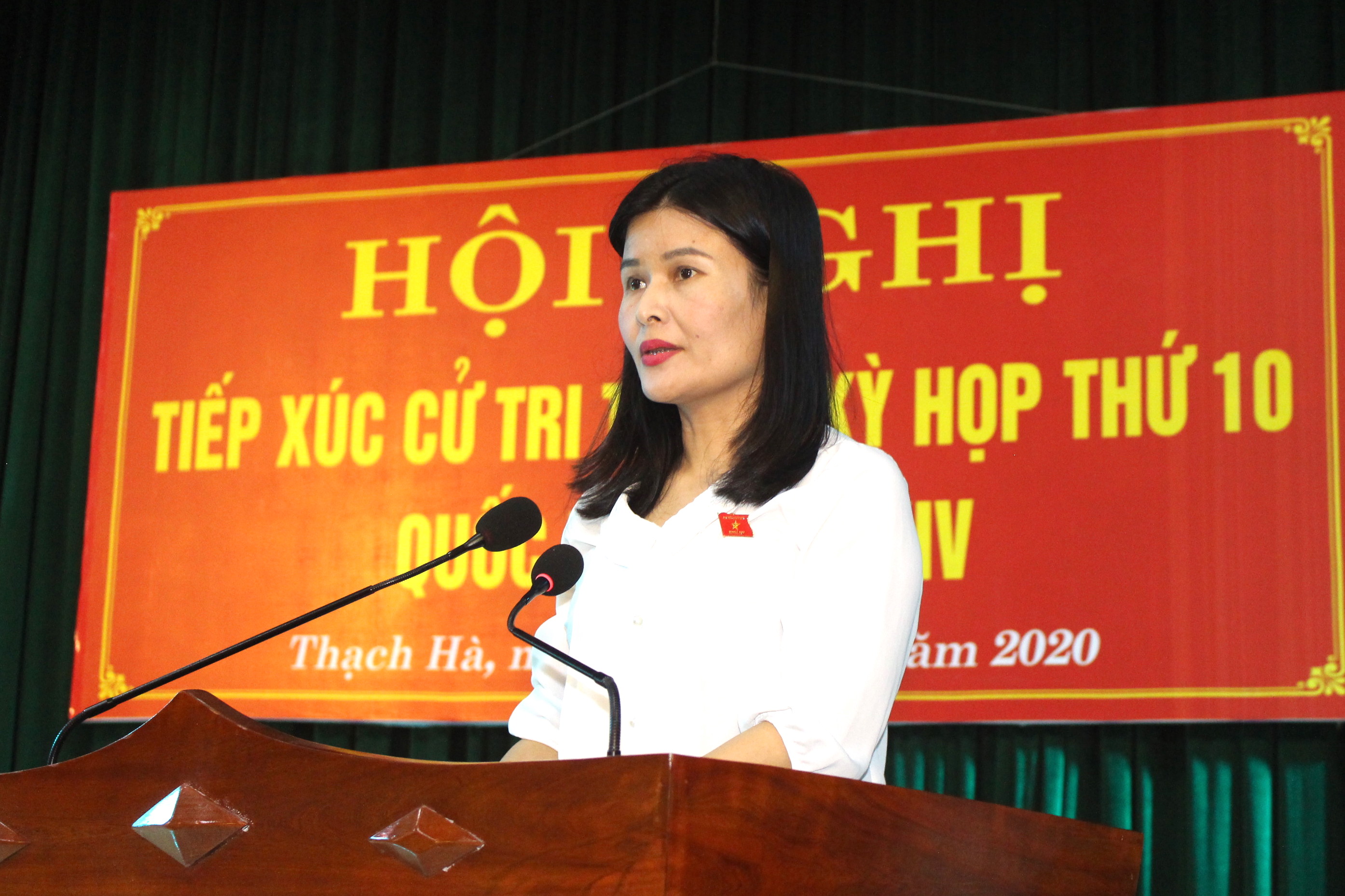 | Đại biểu Bùi Thị Quỳnh Thơ - Ủy viên Ban Kinh tế của Quốc hội, Phó hiệu trưởng trường Đại học Hà Tĩnh thông qua báo cáo dự kiến nội dung kỳ họp thứ 10 Quốc hội khóa XIV và báo cáo một số hoạt động của Đoàn Đại biểu Quốc hội tại Hà Tĩnh từ Kỳ họp thứ 9 đến nay |