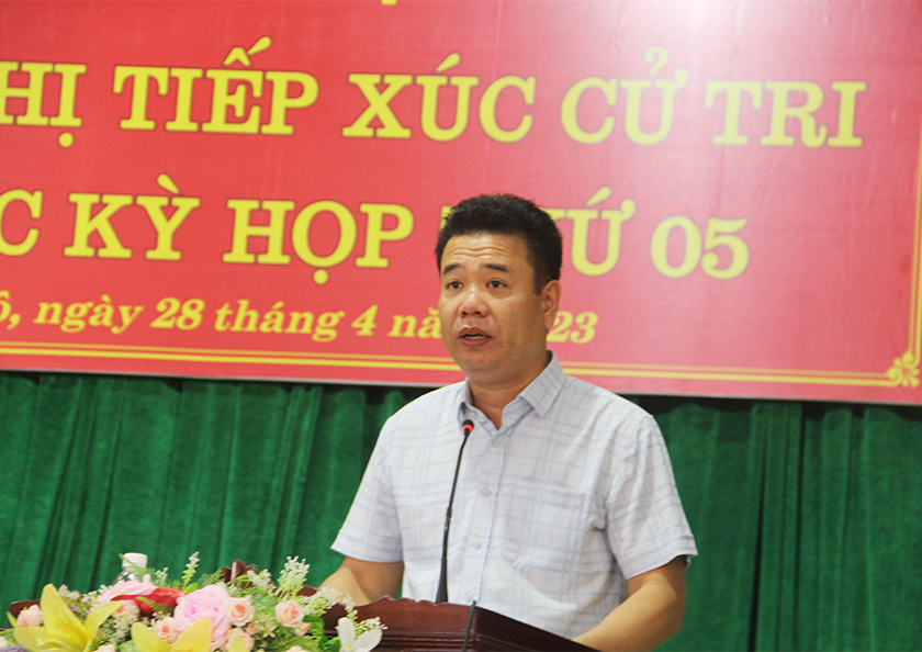 Phát biểu tại cuộc tiếp xúc, Phó Trưởng đoàn chuyên trách Đoàn ĐBQH tỉnh Trần Đình Gia đã tiếp thu, giải trình các ý kiến kiến nghị của cử tri. Đồng thời, đại biểu đã thông tin đến cử tri kết quả thực hiện một số Luật đã ban hành; tình hình thực hiện nhiệm vụ phát triển kinh tế - xã hội, đảm bảo quốc phòng - an ninh của đất nước, tỉnh; tình hình chính trị, kinh tế của thế giới ảnh hưởng đến thương mại toàn cầu. Đối với các ý kiến kiến nghị chính đáng của cử tri, Đoàn ĐBQH tỉnh sẽ tổng hợp, gửi đến các cấp có thẩm quyền xem xét, trả lời cử