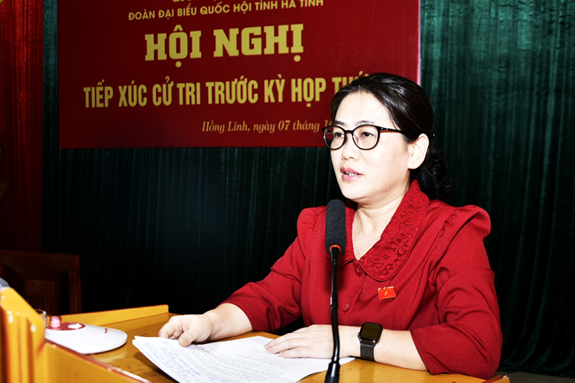 Thay mặt Đoàn ĐBQH tỉnh, Ủy viên chuyên trách Ủy ban Kinh tế của Quốc hội Bùi Thị Quỳnh Thơ ghi nhận, tiếp thu, giải trình và thông tin một số nội dung, vấn đề cử tri TX Hồng Lĩnh quan tâm. Đối với ý kiến, kiến nghị thuộc thẩm quyền giải quyết của Trung ương, đoàn tiếp thu, nghiên cứu, tổng hợp báo cáo tới Quốc hội, Chính phủ và các ban, ngành xem xét, giải quyết, đáp ứng nguyện vọng chính đáng của Nhân dân.