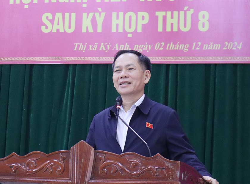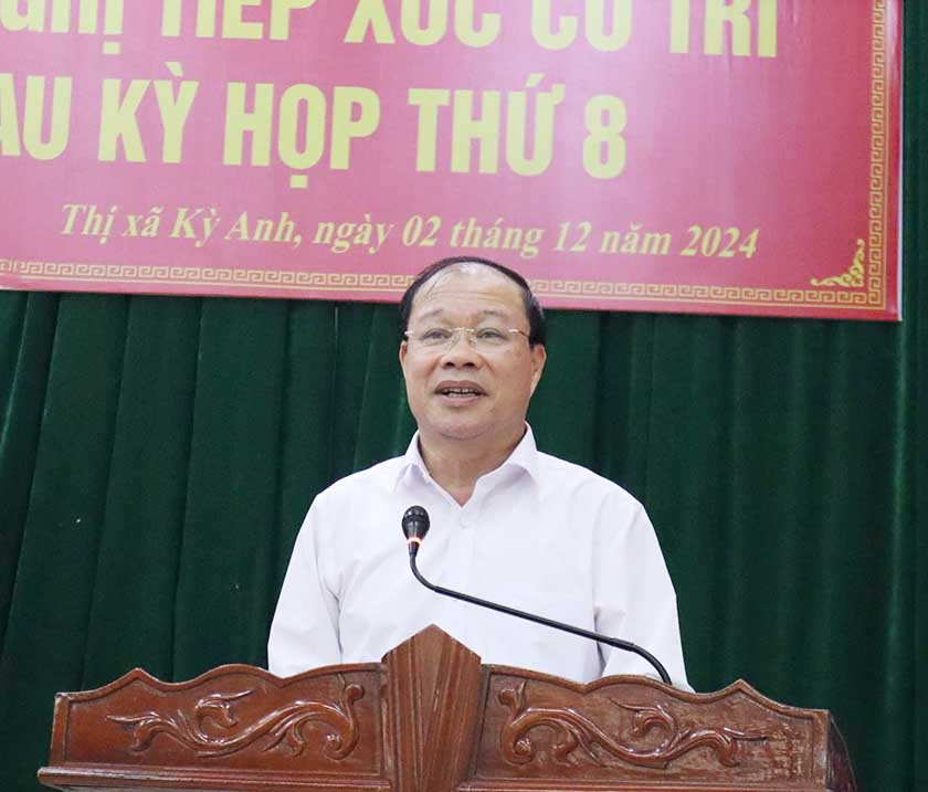 Cử tri thị Kỳ Anh đề nghị sớm có các giải pháp khắc tuyến đê Hoàng Đình ở phường Hưng Trí và Kỳ Trinh để đảm bảo công tác sản xuất và đời sống sinh hoạt cho các hộ dân; xây dựng dự án đê ngăn mặn ở thị xã Kỳ Anh; quan tâm giải quyết công tác bồi thường, hỗ trợ khi thu hồi đất phục vụ các công trình, dự án trên địa bàn; đẩy nhanh việc đầu tư cảng cá loại I tại xã Kỳ Ninh; sớm phê duyệt địa giới hành chính các xã, phường để thuận tiện công tác quản lý; tạo điều kiện người dân tiếp cận các vốn vay của ngân hàng chính sách xã hội để hỗ trợ phát triển sản xuất; triển khai các giải pháp để ngăn chặn tình trạng lừa đảo trên không gian mạng; có giải pháp để hạn chế tình trạng tai nạn giao thông tại một số điểm trên địa bàn…