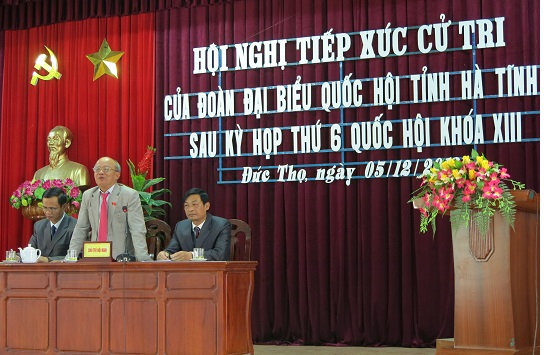 Tại các điểm tiếp xúc, cử tri bày tỏ sự vui mừng, phấn khởi trước những thành công của kỳ họp; nhất là đã thông qua được bản Hiến pháp mới; vui mừng trước những hoạt động tích, cực, hiệu quả, tinh thần trách nhiệm cao của Đoàn ĐBQH tỉnh trong thảo luận, góp ý các văn kiện của kỳ họp;ủtong việc bố trí thời gian làm việc với các cơ quan Trung ương để tranh thủ nguồn lực cho đầu tư phát triển của tỉnh… Đồng thời cử tri cũng đã gửi đến Đoàn ĐBQH Quốc hội những băn khoăn, lo lắng: về chất lượng hoạt động thanh tra, giám sát của các cơ quan của Chính phủ, của Quốc hội, HĐND các cấp hầu như không phát hiện ra các vụ tiêu cực, tham nhũng, mà chủ yếu do báo chí, hoặc đơn thư tố cáo của công dân; đề nghị xác định rõ hơn quyền của trẻ em trong việc khám, chữa bệnh theo chế độ bảo hiểm y tế, chứ không chỉ trẻ em dưới 6 tuổi mới được hưởng; cần thực hiện nghiêm trách nhiệm đi nghĩa vụ quân sự đối với tất cả những người trong độ tuổi thanh niên; Luật dân quân tự vệ quy định các xã biên giới đều có xã đội phó chuyên trách, nhưng Nghị định 92 của Chính phủ lại cho hưởng chế độ bán chuyên trách; tình trạng xử người oan sai vẫn còn nhiều; biến đổi khi hậu ngày càng phức tạp, do vậy Chính phủ có chính sách đầu tư xây dựng các công trình, nhà chống lũ cho nhân dân vùng lũ; khu vực nông thôn dân số giảm, hiện tuợng già hoá dân số vùng nông thôn ngày càng nhiều, do vậy cần có chính sách hợp lý để khắc phục tình trạng này; việc thể chế hoá các văn bản luật được Quốc hội thông qua chậm; quan tâm đầu tư giống, phân bón cho nông dân; Quốchội cần chỉ đạo ban hành kịp thời các hướng dẫn để triển khai thực hiện Hiến pháp mới; bố trí ngân sách để sớm hoàn thành Quốc lộ 8A, tuyến đê La Giang; đầu tư kinh phí thực hiện dự án sống chung với lũ của 7 xã ngoài đê huyện Đức Thọ, hỗ trợ kinh phí sủa chữ lại cơ sở hạ tầng cho các xởn huyện Hương Sơn sau trận lũ vừa qua …