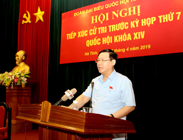 Phát biểu tại hội nghị, Phó Thủ tướng Chính phủ Vương Đình Huệ ghi nhận các ý kiến tâm huyết, đầy trách nhiệm của cử tri khối Doanh nghiệp Hà Tĩnh. Qua đó, giải trình, làm rõ các nội dung liên quan đến: tình hình, kết quả hoạt động và tốc độ phát triển của Doanh nghiệp; các vấn đề về doanh nghiệp khởi nghiệp đổi mới, sáng tạo; việc quản lý, khai thác, sử dụng khoáng sản làm vật liệu xây dựng; công tác thu gom rác thải đảm bảo vệ sinh môi trường; các vấn đề liên quan đến chính sách của người lao động; việc chuyển đổi khu công nghiệp sang khu đô thị, thương mại... Trên cơ sở các ý kiến của cử tri khối Doanh nghiệp, đề nghị tỉnh Hà Tĩnh tiếp tục quan tâm tạo môi trường đầu tư thuận lợi để Doanh nghiệp phát triển.