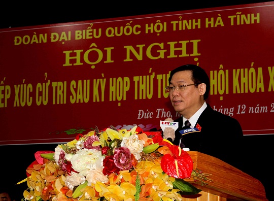 Phó Thủ tướng Chính phủ cũng đánh giá cao nỗ lực vượt qua khó khăn của tỉnh cũng như của huyện Đức Thọ trong điều hành, chỉ đạo phát triển kinh tế xã hội, ổn định an ninh trật tự. Chia sẻ những băn khoăn của cử tri về những khó khăn trong huy động nguồn lực xây dựng nông thôn mới, Phó Thủ tướng cho rằng, trong điều kiện ngân sách nhà nước khó khăn, rất cần sự chung tay của cộng đồng doanh nghiệp và người dân. Hiện nay, Chính phủ đang nỗ lực để hỗ trợ cho vùng nông thôn một số chính sách như: cơ chế đấu giá đất, nước sạch, hỗ trợ lãi suất…