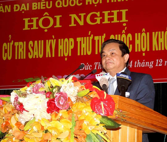 Ý kiến, kiến nghị với Phó Thủ tướng Chính phủ, cử tri Đức Thọ đánh giá cao kết quả của kỳ họp thứ 4, Quốc hội khoá XIV, nhất là thời gian, nội dung chất vấn và trả lời chất vấn của các bộ trưởng sát với yêu cầu, đòi hỏi của cử tri cả nước. Đồng thời, cử tri Đức Thọ đề nghị Quốc hội, Chính phủ cần quan tâm, có những chính sách hỗ trợ thiết thực hơn nữa cho các xã miền núi, xã khó khăn trong xây dựng nông thôn mới; đầu tư cho phát triển làng nghề truyền thống. Đặc biệt, trong xây dựng hạ tầng giao thông, thủy lợi cần được hỗ trợ nhiều hơn nữa để người dân có cơ hội phát triển sản xuất, xóa đói giảm nghèo bền vững hơn. Cử tri đề nghị Chỉnh phủ ưu tiên nguồn kinh phí để lập dự án mới xây dựng cầu mới thay cho cầu Thọ Tường - cầu nối huyết mạch 7 xã của huyện Đức Thọ và 9 xã của huyện Nam Đàn được xây dựng từ lâu, nay đã xuống cấp nghiêm trọng.