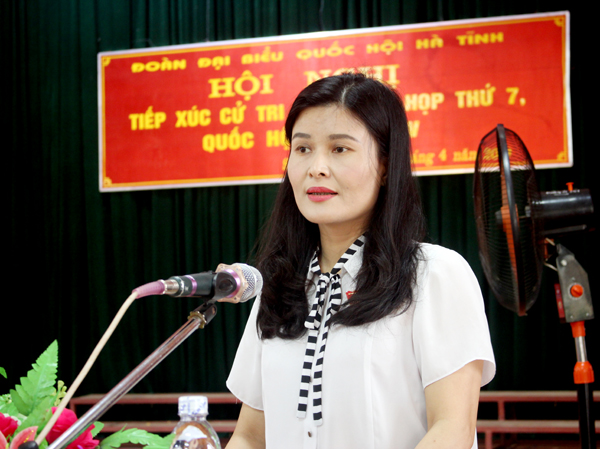 Tại buổi tiếp xúc, đại biểu Quốc hội Bùi Thị Quỳnh Thơ, Ủy viên Ủy ban Kinh tế của Quốc hội thay mặt Đoàn báo cáo với cử tri nội dung dự kiến, thời gian kỳ họp thứ 7, Quốc hội khóa XIV và một số hoạt động của đoàn đại biểu Quốc hội từ sau kỳ họp thứ 6 đến nay.