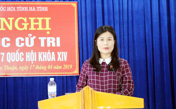 Tại buổi TXCT, cử tri đã nghe đại biểu Bùi Thị Quỳnh Thơ báo cáo kết quả hoạt động của Đoàn ĐBQH tỉnh thời gian qua và nội dung, chương trình dự kiến kỳ họp thứ 7 Quốc hội khóa 14.