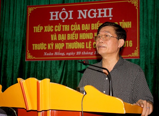 Tiếp tục kế hoạch tiếp xúc cử tri trước kỳ họp thứ 3, ngày 23/11/2016, Tổ đại biểu Hội đồng nhân dân (HĐND) tỉnh bầu trên địa bàn huyện Nghi Xuân đã tiếp xúc cử tri tại các điểm: thôn Cát Thủy xã Xuân Viên, thôn Yên Nam xã Xuân Yên, thôn Hồng Tiến xã Xuân Giang và thôn 5 xã Xuân Hồng huyện Nghi Xuân.