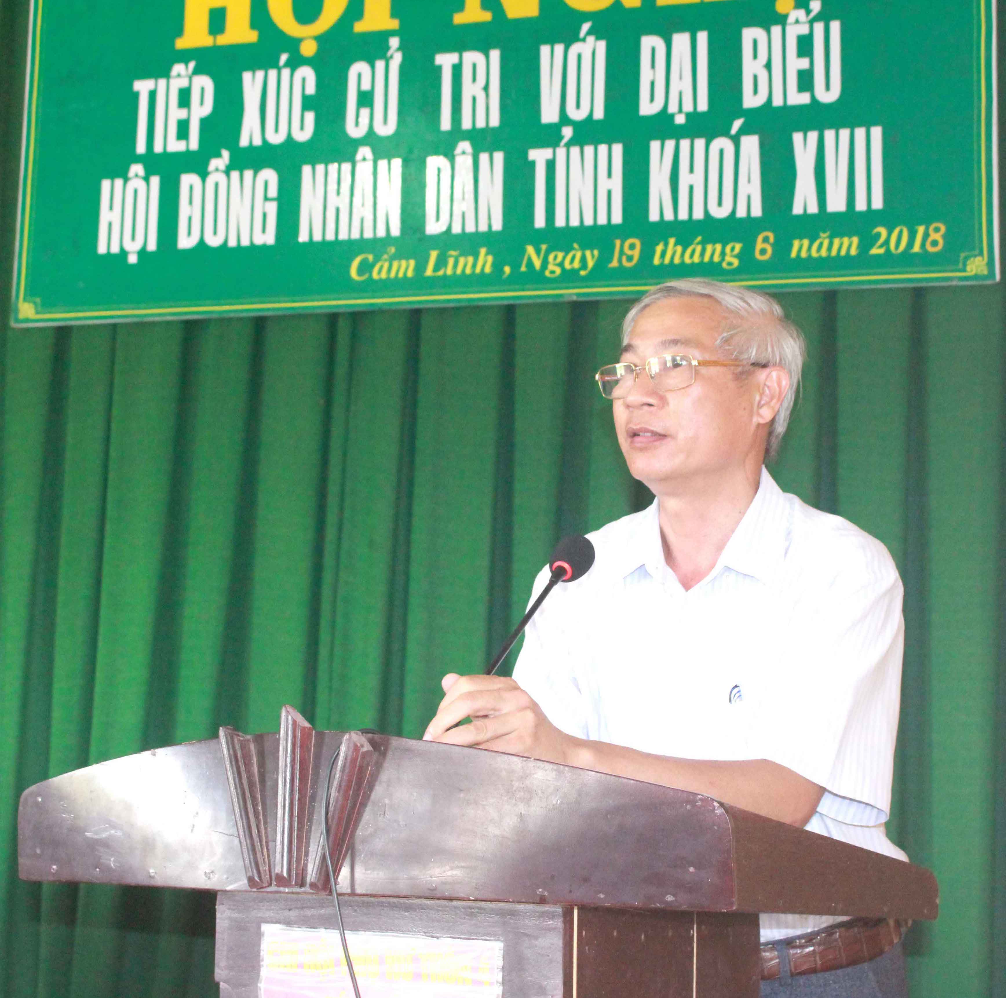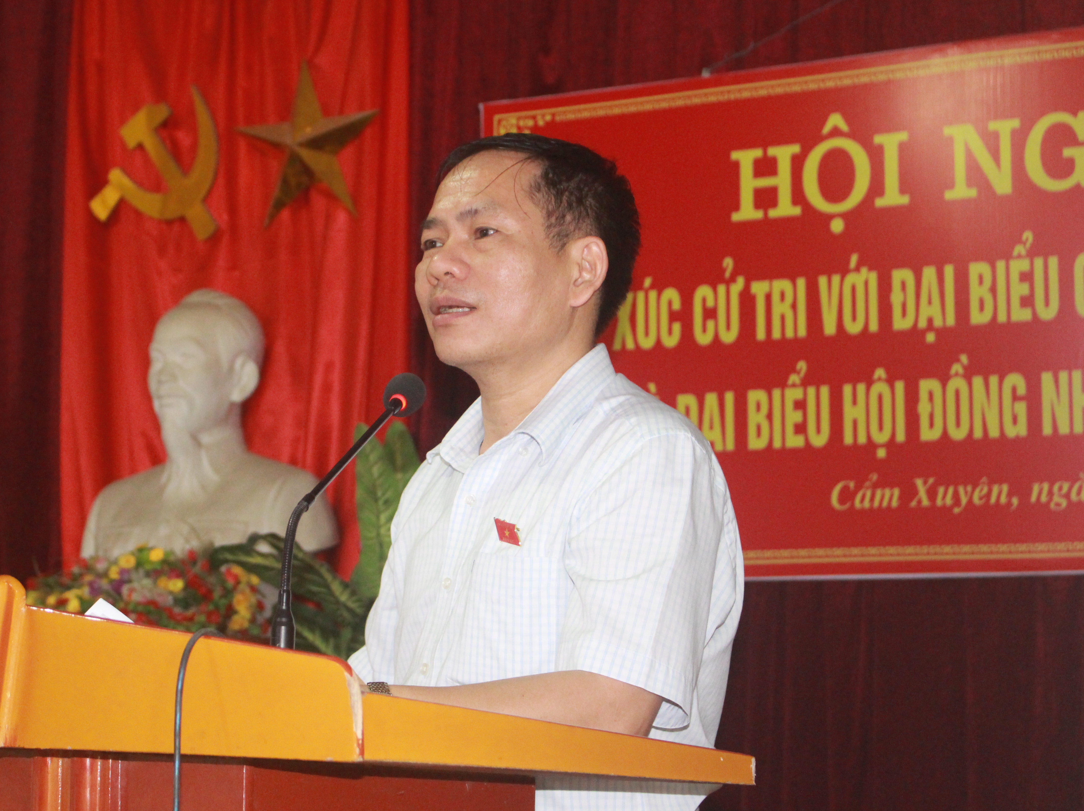 Tại các điểm tiếp xúc, cử tri huyện Cẩm Xuyên đã được nghe đại biểu Quốc hội Trần Đình Gia thông báo một số kết quả kỳ họp thứ 5 Quốc hội khóa XIV và đại biểu HĐND tỉnh báo cáo dự kiến nội dung, chương trình kỳ họp thứ 7, HĐND tỉnh khóa XVII; tình hình kinh tế xã hội 6 tháng đầu năm 2018 của tỉnh nhà và kết quả thực hiện chất vấn và kiến nghị của cử tri tại kỳ họp thứ 5.