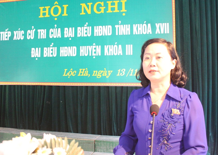 Thay mặt tổ đại điểu HĐND tỉnh bầu tại địa bàn huyện Lộc Hà, Bí thư huyện ủy Lộc Hà Trương Thị Thanh Huyền ghi nhận, tiếp thu những ý kiến đóng góp của cử tri, những kiến nghị đến HĐND tỉnh. Đồng thời trả lời, làm rõ thêm một số nội dung liên quan đến những kiến nghị, đề xuất của cử tri huyện Lộc Hà.