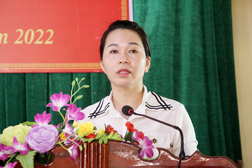 Đại biểu HĐND tỉnh, Trưởng ban Văn hóa - Xã hội HĐND tỉnh Đào Thị Anh Nga báo cáo kết quả phát triển kinh tế - xã hội 6 tháng đầu năm, phương hướng nhiệm vụ 6 tháng cuối năm 2022, dự kiến nội dung, chương trình kỳ họp thứ 7, HĐND tỉnh khóa XVIII và kết quả giải quyết các ý kiến kiến nghị của cử tri.