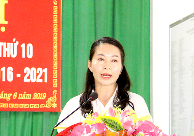 Đại biểu HĐND tỉnh Đào Thị Anh Nga báo cáo dự kiến nội chương trình, nội dung kỳ họp thứ 10 HĐND tỉnh khóa XVII