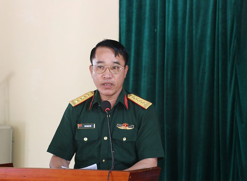 | Đại tá Mai Ngọc Việt - Phó Chính uỷ Bộ CHQS tỉnh báo cáo nội dung, chương trình Kỳ họp thứ 14 và tiếp thu, giải trình các ý kiến, đề xuất của cử tri |