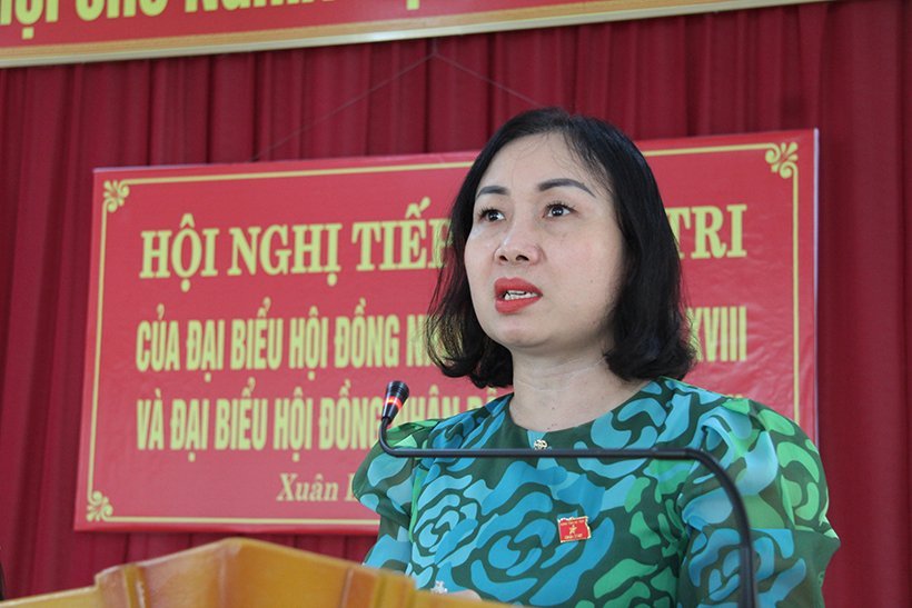 Đại biểu Nguyễn Thị Thúy Nga - Trưởng ban Kinh tế - Ngân sách HĐND tỉnh báo cáo kết quả phát triển KT-XH của tỉnh năm 2022 với cử tri xã Xuân Lam. |