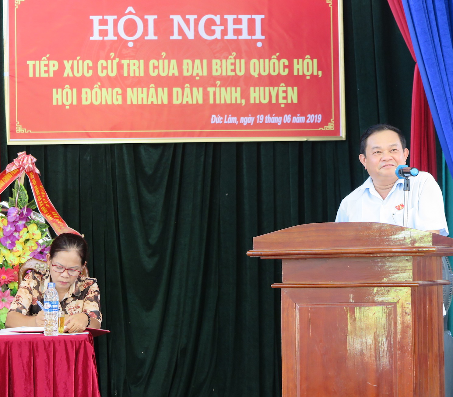 Chiều cùng ngày tại xã Đức Lâm Phó trưởng Đoàn ĐBQH tỉnh Nguyễn Văn Sơn cũng có buổi tiếp xúc cử tri để báo cáo kết quả Kỳ họp thứ 7, Quốc hội khóa XIV và một số hoạt động của Đoàn ĐBQH tỉnh tại kỳ họp.