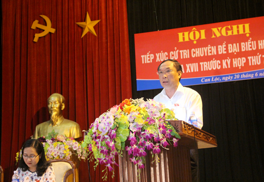 Thay mặt Tổ đại biểu HĐND tỉnh, Phó Chủ tịch HĐND tỉnh Võ Hồng Hải đã tiếp thu ý kiến kiến nghị cử tri và giải trình một số vấn đề cử tri quan tâm. Đại biểu Đặng Quốc Khánh, Phó Bí thư Tỉnh ủy, Chủ tịch UBND tỉnh, Trưởng Đoàn ĐBQH tỉnh đã phát biểu đánh giá cao hiệu quả, ý nghĩa của buổi tiếp xúc cử tri chuyên đề; rút kinh nghiệm công tác tổ chức và bố trí thành phần tham dự để buổi tiếp xúc nhận được nhiều ý kiến góp ý chất lượng hơn. Đồng thời khẳng định, để bảo tồn, phát huy, không đơn thuần chỉ tập trung vào nguồn lực đầu tư mà quan trọng hơn là công tác tuyên truyền để thế hệ trẻ say mê các giá trị di sản của dân tộc; gắn bảo tồn phát huy di sản vào đời sống người dân. Việc bảo tồn, phát huy các giá trị di sản văn hóa cần phải gắn với phát triển kinh tế - xã hội do đó Can Lộc cũng như các địa phương khác cần chuẩn bị các điều kiện để tập trung phát triển thương mại - dịch vụ, góp phần quảng bá, gìn giữ các giá trị di sản.