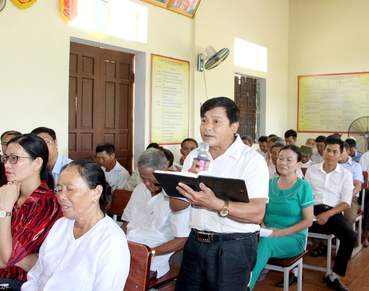 Cử tri Lê Hữu Chương ( thôn Hưng Giang) đề nghị sớm đầu tư xây dựng khu trung tâm hành chính mới sau sáp nhập; nghiên cứu điều chỉnh giá điện và có chính sách hỗ trợ nâng cấp nhà thờ Lý Tự Trọng.