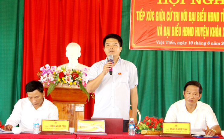 Trên lĩnh vực đầu tư xây dựng cơ bản, đất đai, cử tri phản ánh trong quá trình thi công một số dự án trên địa bàn đã làm hư hỏng một số tuyến đường giao thông, kênh mương đề nghị cấp trên có kế hoạch duy tu, bảo dưỡng; đề nghị quan tâm đầu tư xây dựng cơ sở vật chất cho các xã sau sát nhập; bố trí kinh phí nâng cấp, tu sửa khu di tích nhà thờ Lý Tự Trọng và các chứng tích chiến tranh tại thôn Hưng Giang (xã Việt Tiến); đầu tư hệ thống nước sạch sinh hoạt cho người dân xã Thạch Ngọc; nâng cấp tuyến đường Tỉnh lộ 07 đoạn qua xã Việt Tiến, Thạch Ngọc; thực hiện cắm mốc sớm tuyến cao tốc Bắc - Nam.