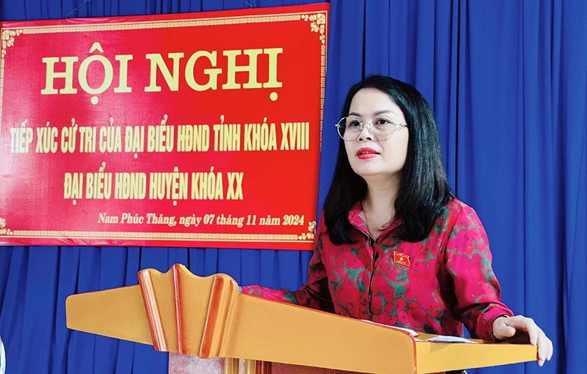 Tổ trưởng Tổ đại biểu HĐND tỉnh bầu tại huyện Cẩm Xuyên Hà Thị Việt Ánh tiếp thu, giải trình các vấn đề cử tri quan tâm
