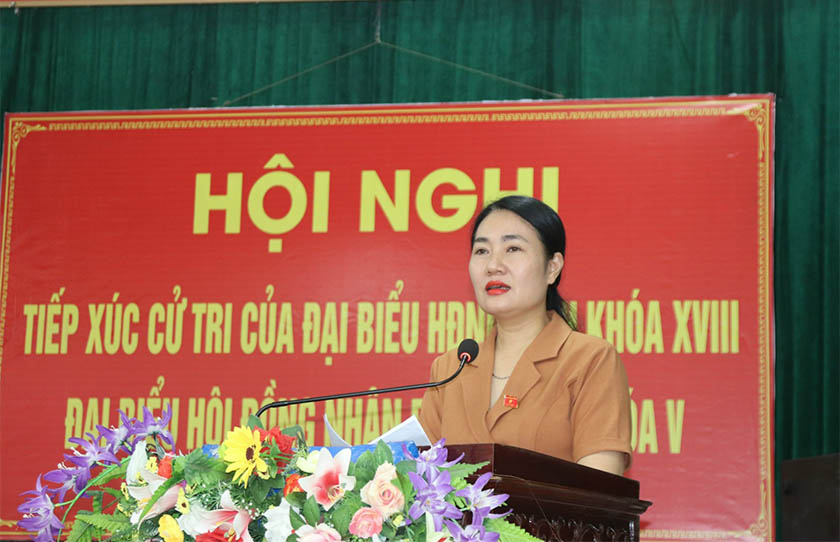 Tại hội nghi tiếp xức, thay mặt Tổ đại biểu HĐND tỉnh khóa XVIII bầu tại Vũ Quang, Bí thư Huyện uỷ Nguyễn Thị Việt Hà đã báo cáo với cử tri tình hình phát triển KT-XH, QP-AN của tỉnh 6 tháng đầu năm 2024; phương hướng nhiệm vụ 6 tháng cuối năm và một số nội dung quan trọng sẽ trình kỳ họp thường lệ giữa năm 2024, HĐND tỉnh khóa XVIII sắp tới.