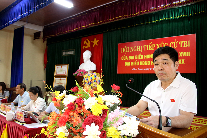 Trên lĩnh vực xây dựng, cử tri đề nghị cần có giải pháp đối với số diện tích bị ảnh hưởng bởi dự án đường cao tốc Bắc - Nam nhưng không thu hồi, diện tích manh mún, khó sản xuất; có giải pháp đảm bảo an toàn giao thông, chống bụi đối với việc triển khai xây dựng Quốc lộ 8C đoạn qua xã Cẩm Quan. Quan tâm bố trí kinh phí xây dựng kè chống sạt lở tại thôn Thủy Triều, xã Cẩm Quan. Đẩy nhanh quá trình giao đất, cấp đất và xử lý kịp thời các tranh chấp giữa các hộ dân trên địa bàn xã.