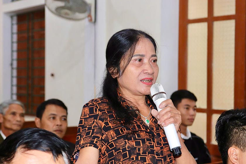 Cử tri Nguyễn Thị Hoa Mai - Trưởng ban Công tác mặt trận thôn Thắng Lợi (xã Hương Minh) kiến nghị một số nội dung liên quan đến vấn đề sáp nhập, sắp xếp đơn vị hành chính