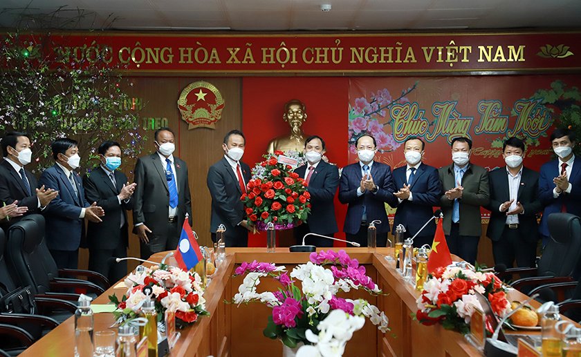 Nhân dịp tết cổ truyền Việt Nam, sáng 24/1, tại Cửa khẩu quốc tế Cầu Treo, đoàn đại biểu tỉnh Bôlykhămxay và tỉnh Khăm Muộn (nước CHDCND Lào) sang thăm, chúc tết Đảng bộ, Nhân dân Hà Tĩnh