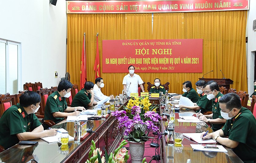 Chiều 29/9/2021, Đảng ủy Quân sự tỉnh tổ chức hội nghị ra nghị quyết lãnh đạo thực hiện nhiệm vụ quốc phòng - quân sự địa phương và xây dựng Đảng bộ quý IV/2021. Ủy viên BCH Trung ương Đảng, Bí thư Tỉnh ủy, Bí thư Đảng ủy Quân sự tỉnh Hoàng Trung Dũng và Đại tá Nguyễn Tất Nhân - Phó Bí thư Đảng ủy, Chính ủy Bộ CHQS tỉnh chủ trì hội nghị.