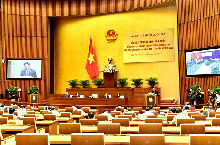Sáng ngày 15/7/2021, tại điểm cầu Nhà Quốc hội, dưới sự chủ trì của Ủy viên Bộ Chính trị, Chủ tịch Quốc hội, Chủ tịch Hội đồng Bầu cử quốc gia Vương Đình Huệ, Hội đồng Bầu cử quốc gia đã tổ chức Hội nghị trực tuyến toàn quốc tổng kết công tác bầu cử đại biểu Quốc hội Khóa XV và đại biểu HĐND các cấp nhiệm kỳ 2021 - 2026.