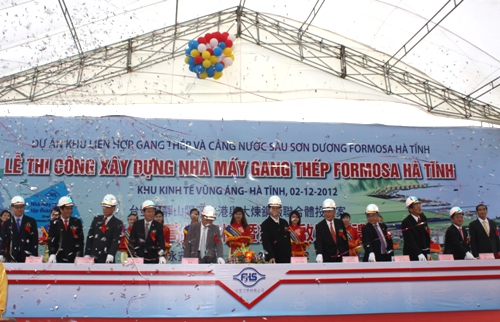 Ngày 2/12, tại Khu kinh tế Vũng Áng, Tập đoàn Formosa đã làm lễ khởi công xây dựng Nhà máy luyện gang thép Formosa Hà Tĩnh. Dự lễ khởi công có UV Bộ Chính Trị, Thủ tướng Nguyễn Tấn Dũng; Bộ trưởng Bộ Tài chính Vương Đình Huệ, Bộ trưởng, Chủ nhiệm Văn phòng Chính phủ Vũ Đức Đam, Bí thư Tỉnh ủyNguyễn Thanh Bình, Phó Bí thư Thường trực Tỉnh ủy Đinh Xuân Việt, Chủ tịch UBND tỉnhVõ Kim Cự. Về phía Tập đoàn FORMOSA có công Vương Văn Uyên– Chủ tịchTập đoànFORMOSA, ông Lâm Tín Nghĩa-Chủ tịch Hội đồng Quản trị Công ty TNHH gang thép Hưng Nghiệp Formosa Hà Tĩnh…