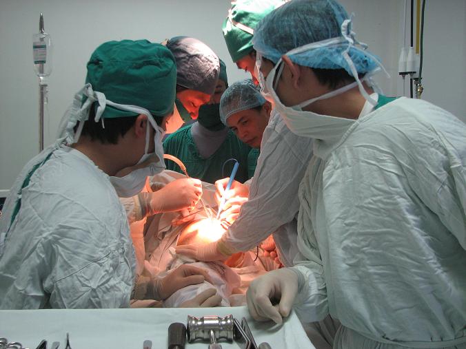 Phía trong phòng mổ, kíp mổ miệt mài làm việc. Người duy nhất tôi có thể nói chuyện lúc này là tiến sỹ Nguyễn Mạnh Khánh – Phó Trưởng khoa Chấn thương chỉnh hình bệnh viện Việt Đức. Tiến sỹ Khánh cho biết, ông là người được đơn vị cử về để chuyên giao kỹ thuật mổ thay khớp háng bằng kỹ thuật mới. Tuy nhiên, cho đến thời điểm này, ông đã trở thành vai trò phụ, chỉ đứng theo dõi. Đội ngũ nhân lực của bệnh viện Đa khoa Hà Tĩnh đã đủ điều kiện độc lập phẫu thuật cho bệnh nhân.