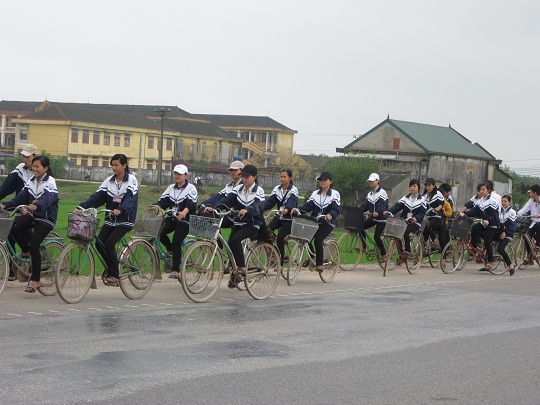 | Các em học trường THPT Hà Huy Tập tham gia giao thông đúng luật |