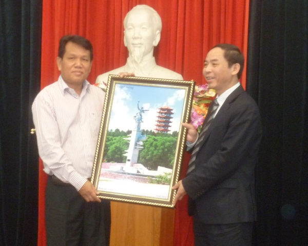 Sáng 4/4, đoàn đại biểu tỉnh Khăm Muộn (Lào) do Phó Tỉnh trưởng tỉnh Khăm Muộn Xốm Chay Phết Xí Nuôn là trưởng doàn đã sang thăm và làm việc tại Hà Tĩnh. Phó Chủ tịch UBND tỉnh Nguyễn Thiện, cùng lãnh đạo các Sở, Ban, ngành tiếp và làm việc với đoàn