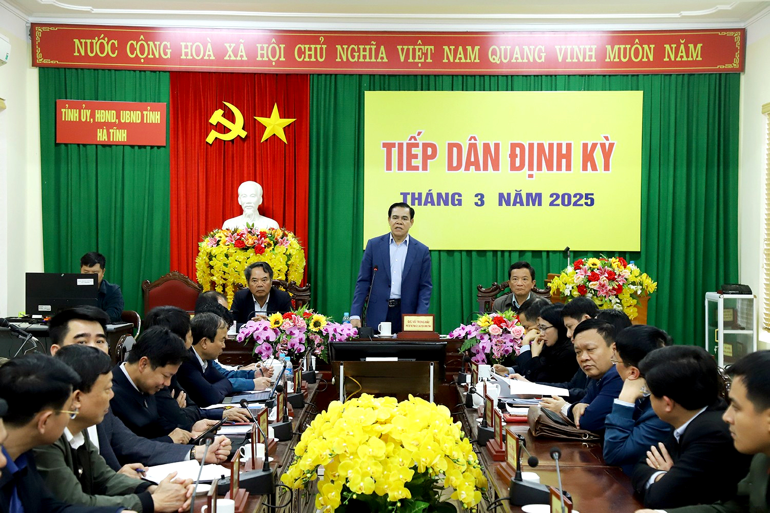 Chủ tịch UBND tỉnh Võ Trọng Hải, Trưởng ban Nội chính Tỉnh ủy Nguyễn Đình Hải và Phó Chủ tịch HĐND tỉnh Trần Văn Kỳ chủ trì phiên tiếp công dân định kỳ tháng 3/2025.