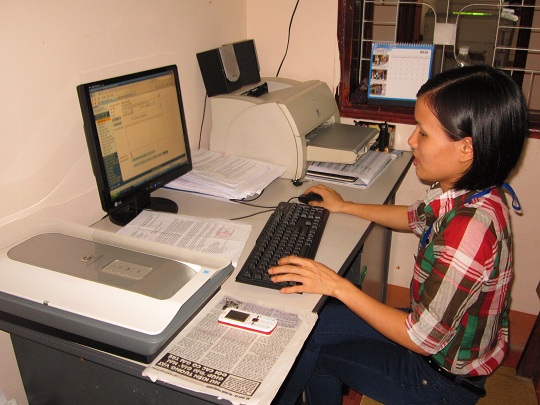 | Thay vì phô tô, in ấn và gửi qua bưu điện, nhiều loại văn bản đã được công chức văn phòng UBND huyện xữ lý qua phần mềm M.Office |