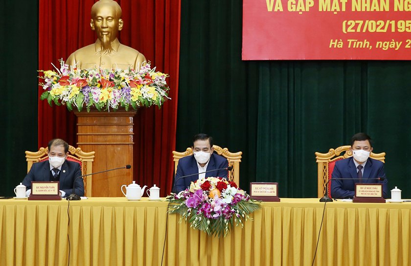 Bí thư Tỉnh ủy, Chủ tịch HĐND tỉnh chúc mừng và tin tưởng, với sự ghi nhận của Đảng và Nhà nước, các Thầy thuốc ưu tú, các đồng chí được khen thưởng hôm nay tiếp tục phát huy năng lực và tâm huyết của mình để cống hiến nhiều hơn nữa cho Ngành, cho tỉnh, cho hạnh phúc của nhân dân. Cảm ơn các doanh nghiệp, các tổ chức, cá nhân trong và ngoài tỉnh đã đồng hành, hỗ trợ tỉnh Hà Tĩnh trong công tác phòng, chống dịch Covid-19, cũng như công tác an sinh xã hội và phát triển kinh tế trên địa bàn.