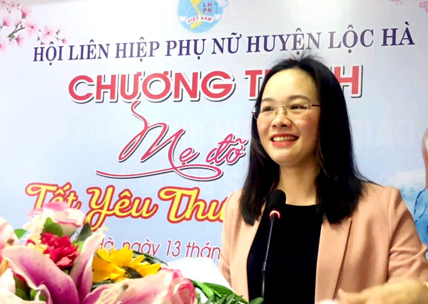 Chủ tịch Hội Liên hiệp Phụ nữ huyện Lộc Hà Hoàng Thị Quỳnh Oanh khai mạc chương trình.