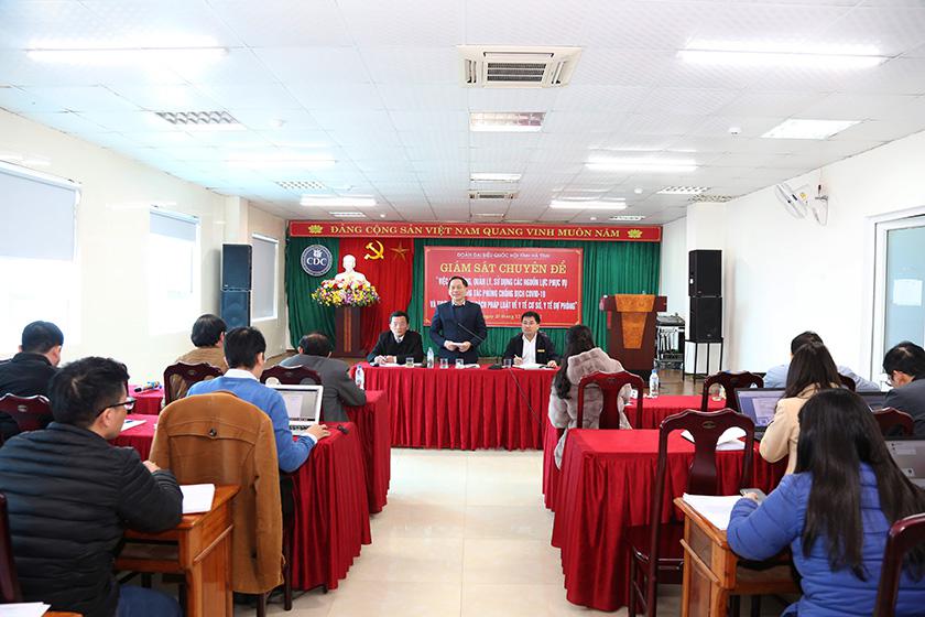 Thực hiện Nghị quyết và Kế hoạch giám sát Quốc hội, Đoàn ĐBQH và Thường trực HĐND tỉnh Hà Tĩnh đã triển khai Đoàn giám sát chuyên đề về “Việc huy động, quản lý, sử dụng các nguồn lực phục vụ công tác phòng, chống dịch Covid-19 từ ngày 01/01/2020 -31/12/2022; việc thực hiện chính sách, pháp luật về y tế cơ sở, y tế dự phòng từ ngày 01/01/2018 - 31/12/2022 trên địa bàn tỉnh Hà Tĩnh”.