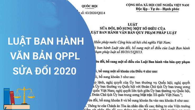 Ngày 18/6/2020, tại kỳ họp thứ 9, Quốc hội khóa XIV đã thông qua Luật sửa đổi, bổ sung một số điều của Luật Ban hành văn bản quy phạm pháp Luật (VBQPPL) năm 2015, có hiệu lực thi hành từ ngày 01/01/2021. Theo đó, Luật đã sửa đổi, bổ sung các Điều khoản về nội dung và về kỹ thuật so với Luật năm 2015. Một số điểm mới đáng chú ý như sau: