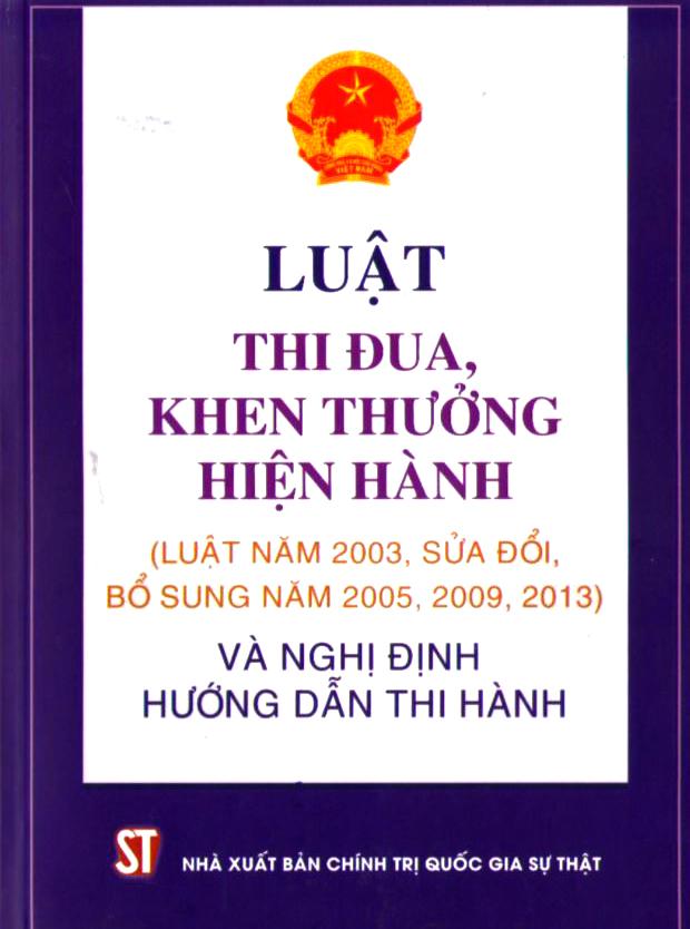 Luật Thi đua, khen thưởng được Quốc hội nước Cộng hòa xã hội chủ nghĩa Việt Nam khóa XI (kỳ họp thứ 4) thông qua ngày 26 tháng 11 năm 2003, có hiệu lực từ ngày 01 tháng 7 năm 2004, được sửa đổi, bổ sung năm 2005 và năm 2013 là văn bản có giá trị pháp lý quan trọng để triển khai thực hiện công tác thi đua, khen thưởng.