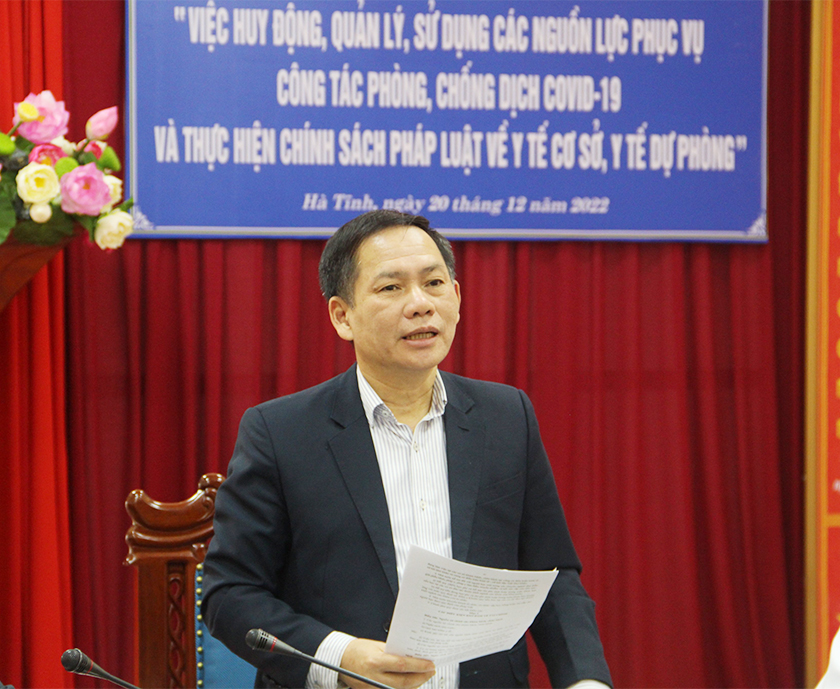 Phó Giám đốc Sở Y tế Hà Tĩnh Đường Công Lự báo cáo với Đoàn giám sát. |