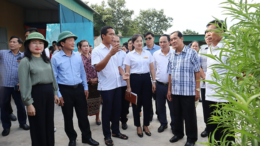 Tiếp đó đoàn đã đến thăm quan vườn ông Nguyễn Đình Hải có diện tích 2.325 m2, trong đó: diện tích trồng chủ lực là cây đào phai 1616 m2, hệ thống công trình chăn nuôi 256m2 sử dụng xử lý môi trường bằng bể biogas. Hệ thống thoát nước nội vườn đảm bảo vệ sinh môi trường. Doanh thu hàng năm khoảng 220 triệu đồng (trong đó doanh thu từ sản phẩm cây đào phai khoảng 130 triệu, doanh thu từ hoạt động chăn nuôi khoảng 90 triệu đồng).
