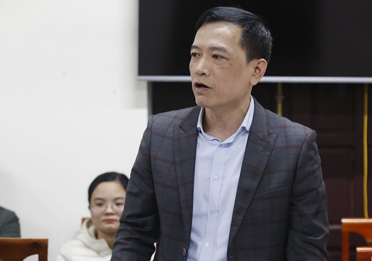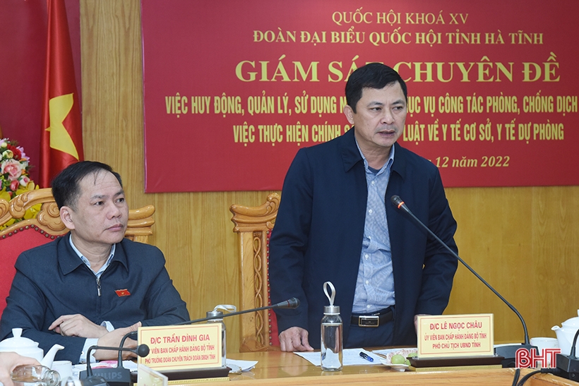| Giám đốc Trung tâm Y tế huyện Can Lộc Nguyễn Trường Sinh báo cáo kết quả thực hiện các chính sách pháp luật về y tế cơ sở, y tế dự phòng |