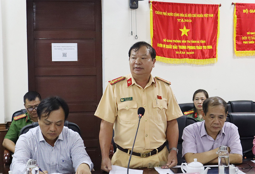 | Thượng tá Trần Xuân Sinh - Phó Trưởng phòng Cảnh sát giao thông (Công an tỉnh) trình bày một số ý kiến liên quan đến sự cần thiết phải xây dựng Luật Trật tự, an toàn giao thông đường bộ |