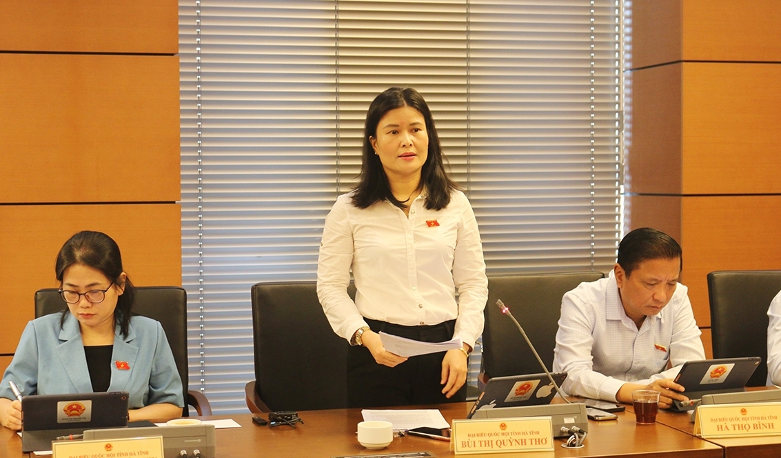 ĐBQH tỉnh Hà Tĩnh - Bùi Thị Quỳnh Thơ thảo luận tại Tổ về dự án Luật Đất đai (sửa đổi). |
