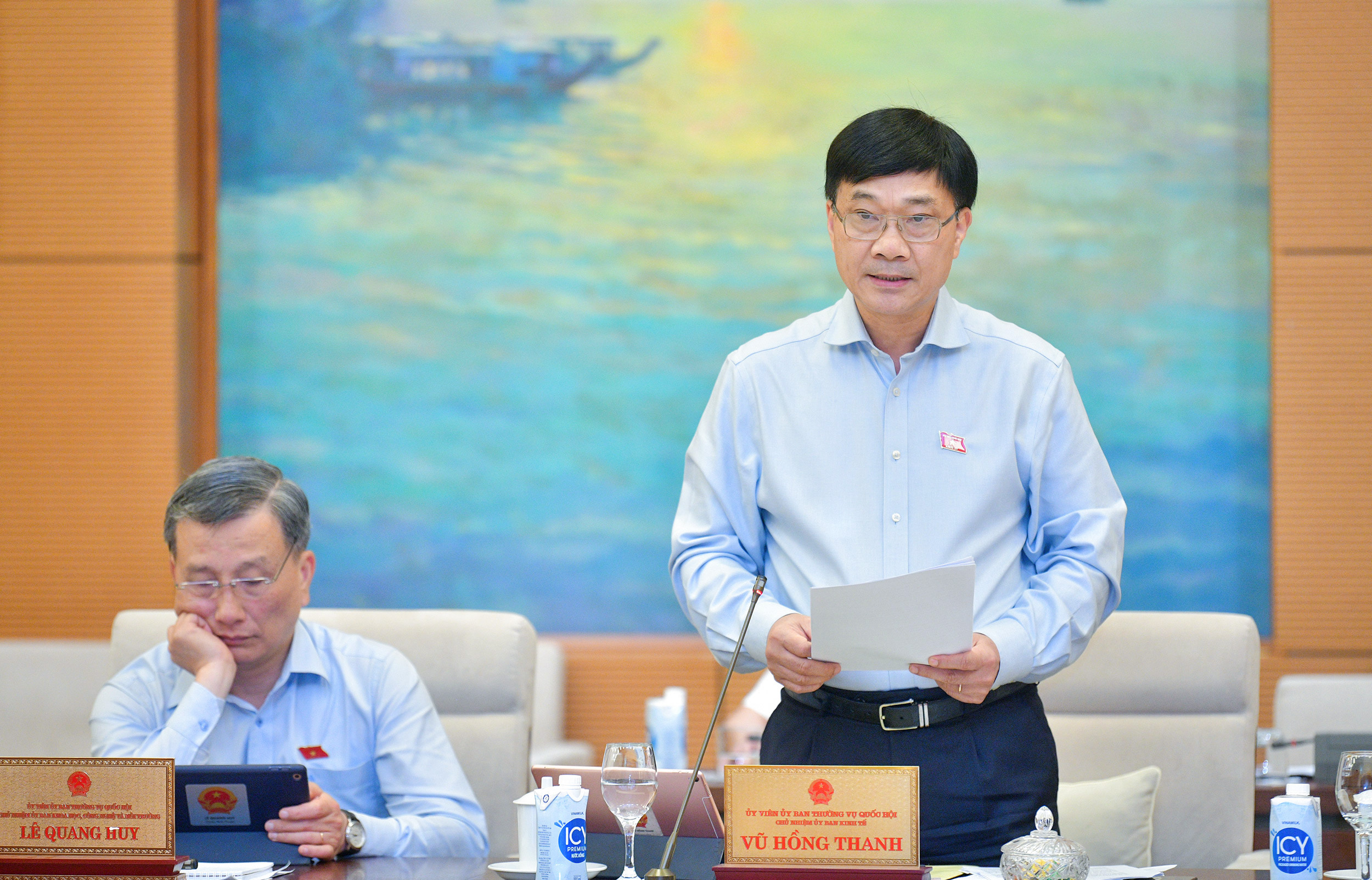 Chủ nhiệm Ủy ban Kinh tế Vũ Hồng Thanh trình bày báo cáo thẩm tra Dự án Luật sửa đổi, bổ sung một số điều của Luật Đấu giá tài sản |